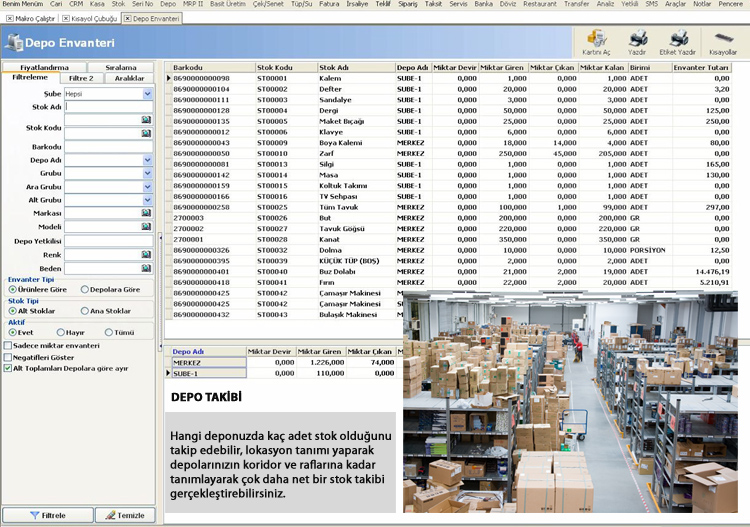 * Stok emniyet limitleri belirterek belirtilen limitin altına düşmesini veya üstüne çıkmasını engelleyebilir,
