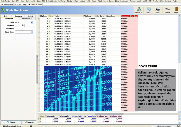 * Geçmiş tarihli döviz kur raporlarını alabilir,