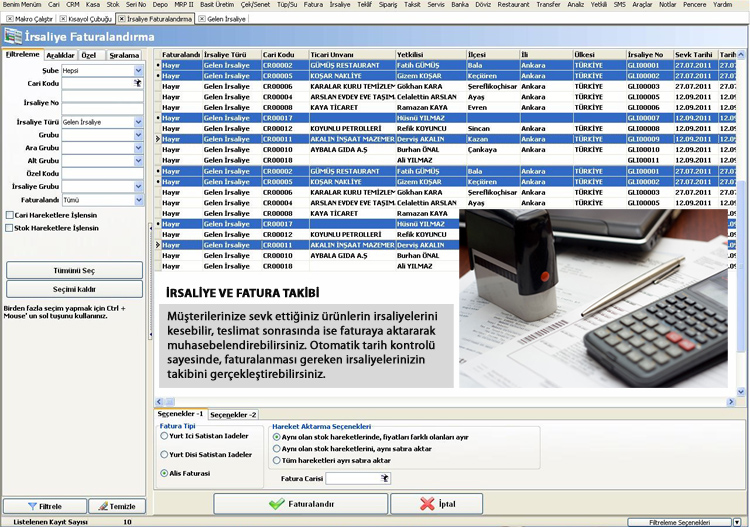 * İrsaliyeleri dilerseniz toplu, dilerseniz tek tek faturalandırabilir,