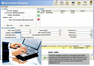 * Servis paketleri tanımlayabilir ve servis fişleri ile ilgili pek çok rapor alabilirsiniz.