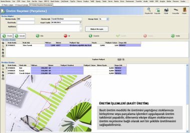 * Oluşturacağınız üretimler için reçete oluşturabilir, fire ve diğer maliyetleri üretime yansıtabilir,