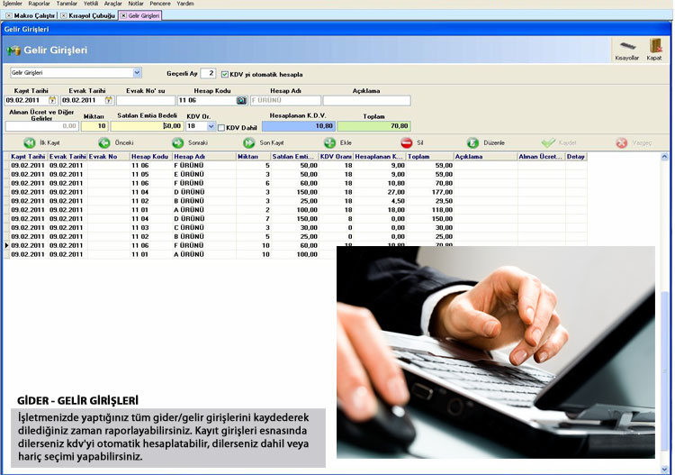 * Gelir Gider girişlerinde otomatik kdv hesaplama,