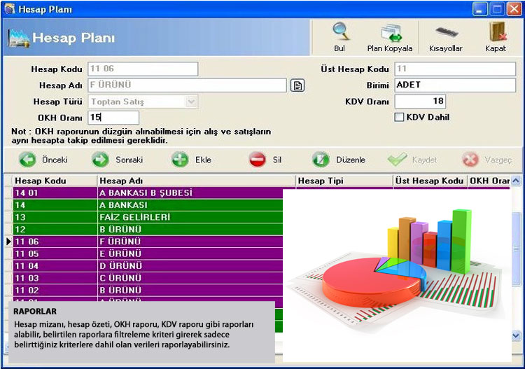 * Mal hesap ekstresi, Kdv raporu ve satış analizi ile geniş raporlama sistemi,